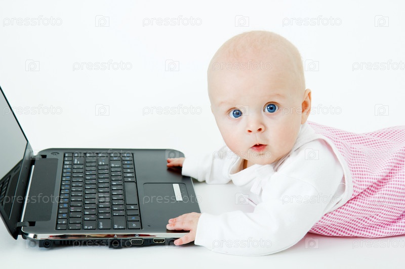 Ребенок с ноутбуком на белом фоне