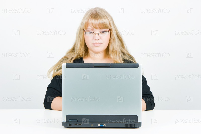 Девушка с ноутбуком на белом фоне