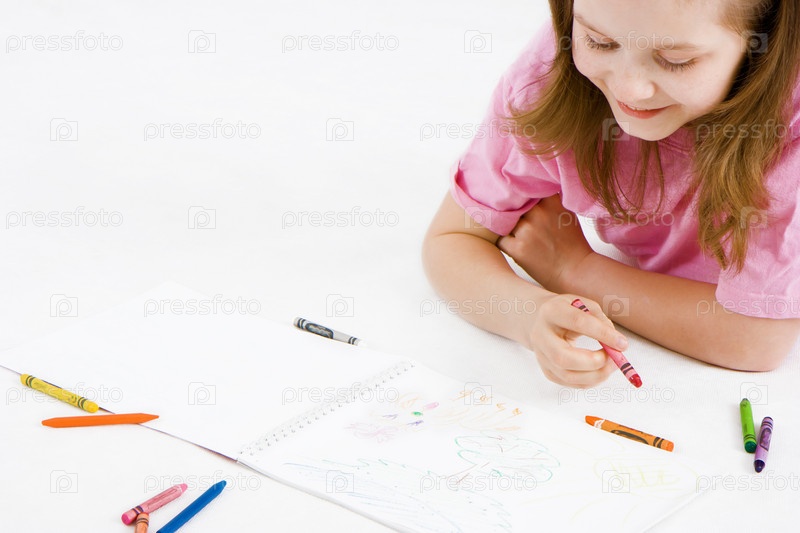 Маленькая девочка, рисующая на белом фоне