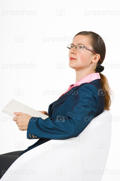 Девушка в очках читает книгу