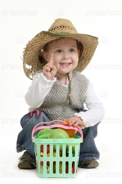 Маленькая девочка играет с игрушечным фруктом