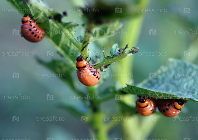 Личинки колорадского жука (Leptinotarsa decemlineata) - сельскохозяйственные вредители
