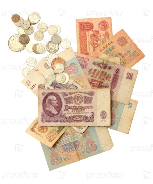 Старые советские деньги на белом фоне