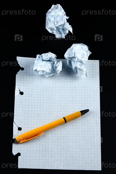 Бумажный лист с ручкой на черном фоне