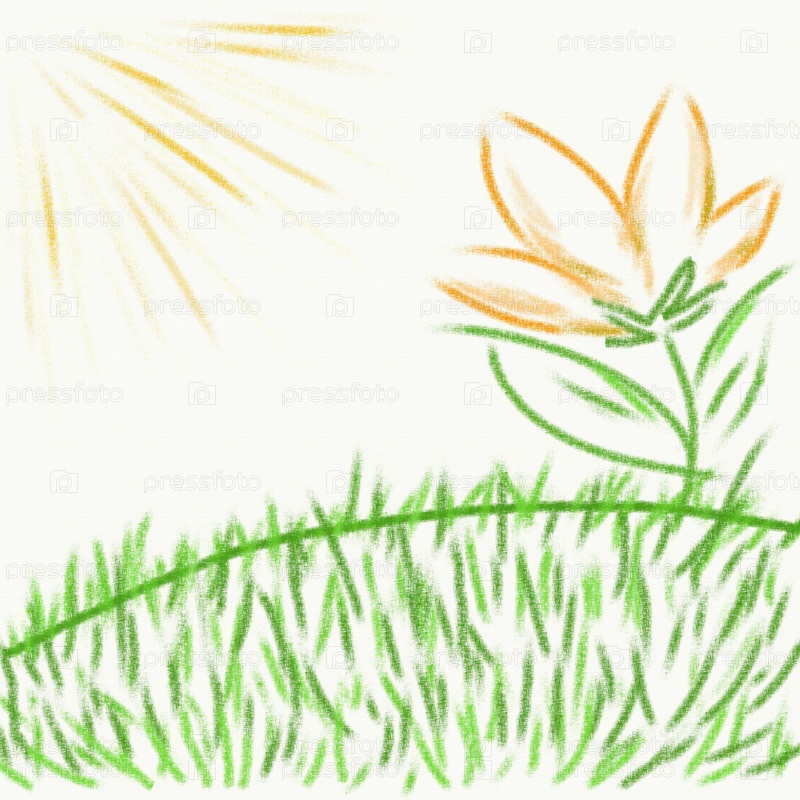 Нарисованные трава, солнце и цветок