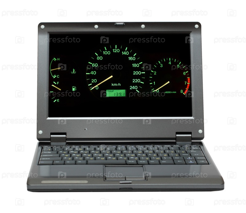 Ноутбук с приборной панелью на экране
