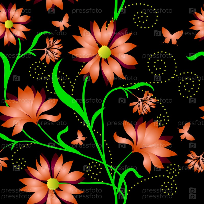 Орнамент из цветов на черном фоне, иллюстрация