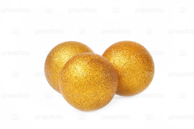 Три золотисто-желтых рождественских мяча изолированы на белом