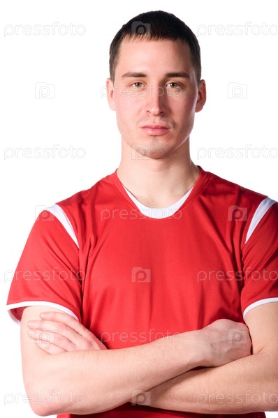 Молодой футболист позирует перед камерой