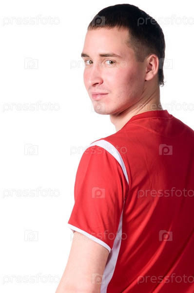 Молодой футболист позирует перед камерой