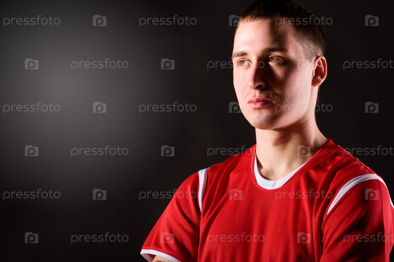 Молодой футболист позирует перед камерой