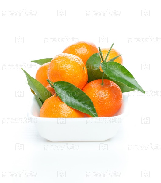 Спелые мандарины в белой тарелке