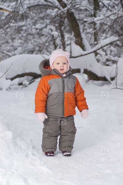 Маленький ребенок в парке зимой