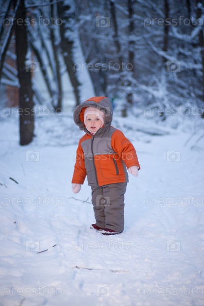 Маленький ребенок в парке зимой