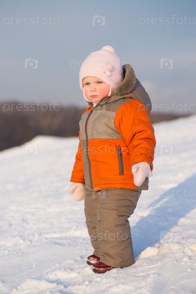 Маленький ребенок в парке зимой