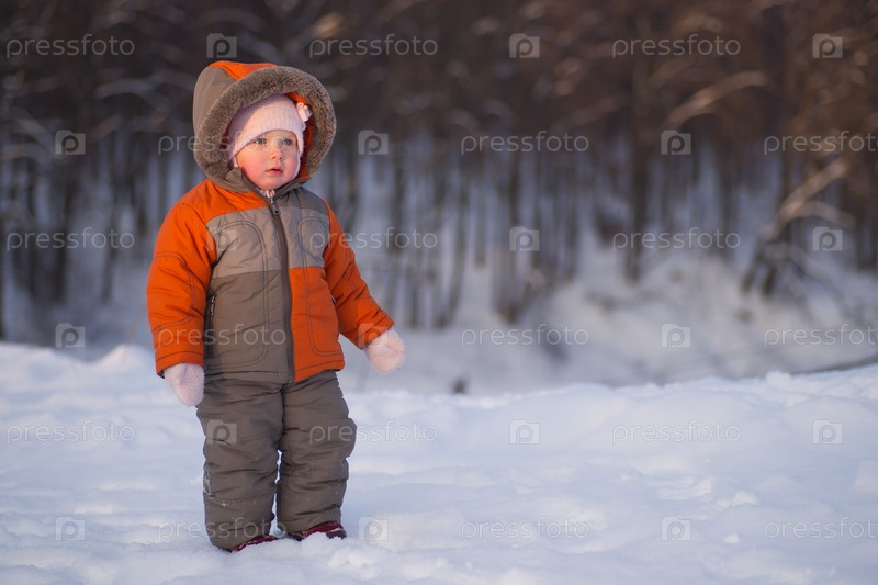 Маленький ребенок в парке зимой