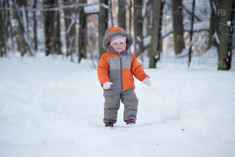 Маленький ребенок в парке зимой