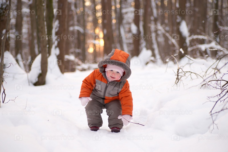 Маленький ребенок в парке зимой
