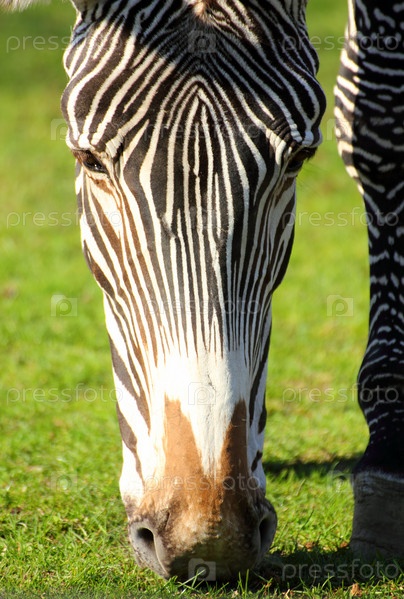 Зебра кушает траву