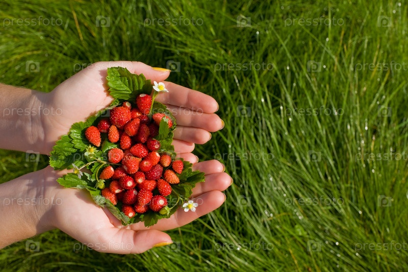 Ягода в руках на траве