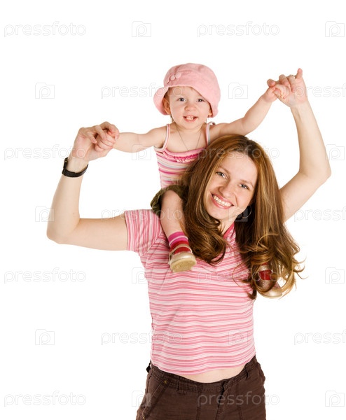 Мать, держащая ребенка на плечах