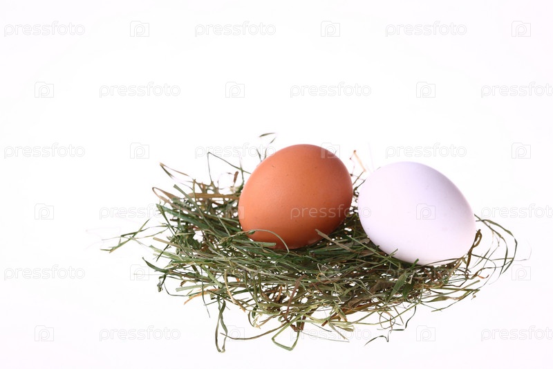 Два куриных яйца в гнезде