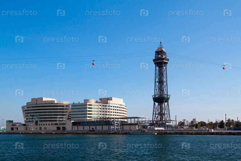 Башня канатной дороги в старом порту в Барселоне