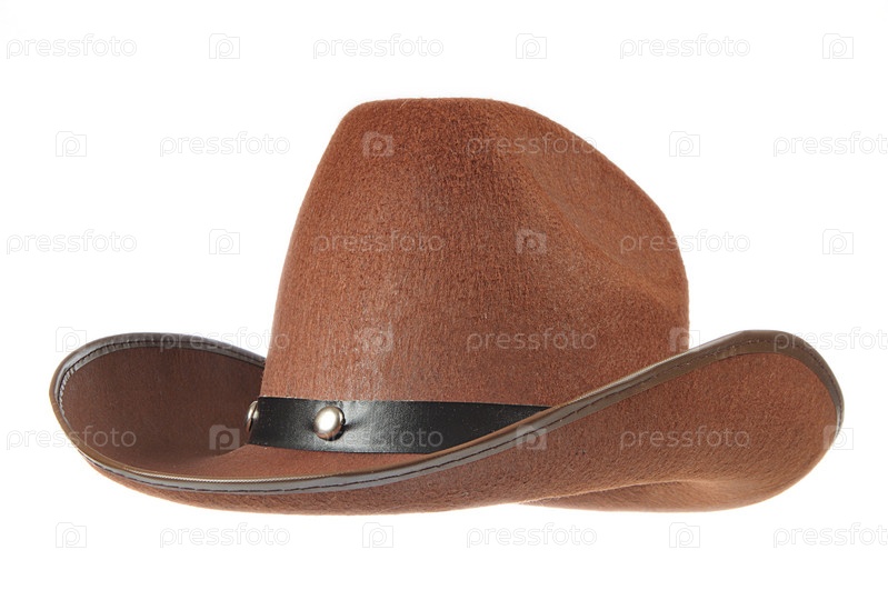 Коричневая ковбойская шляпа на белом фоне