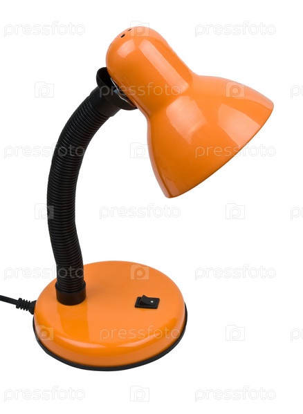 Оранжевая настольная лампа на белом фоне