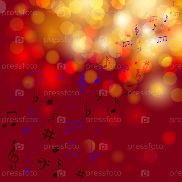 Абстрактный красный фон с нотными знаками