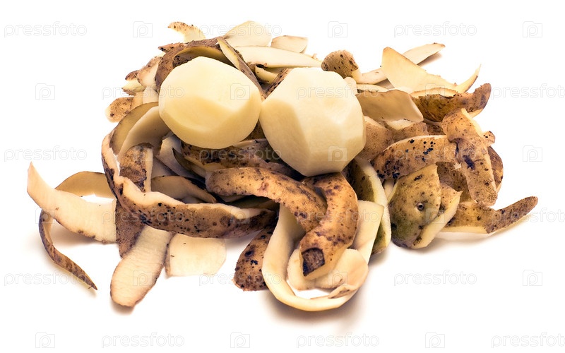 Очищенные картофели и куча очищений изолированы на белом фоне