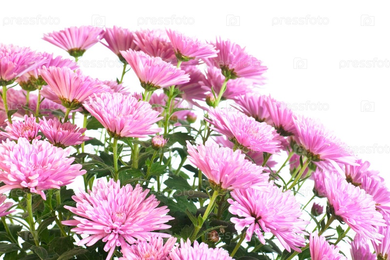 Розовые хризантемы на белом фоне