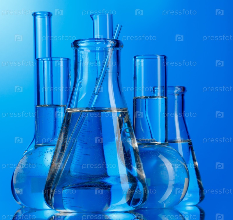 Лабораторная посуда на голубом фоне