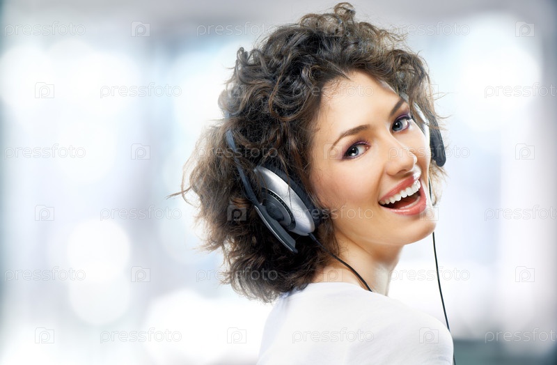 Девушка в наушниках на фоне окна