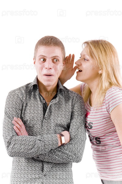 Девушка шепчет на ухо мужчине