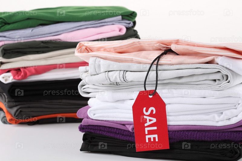 Две стопки одежды на распродаже