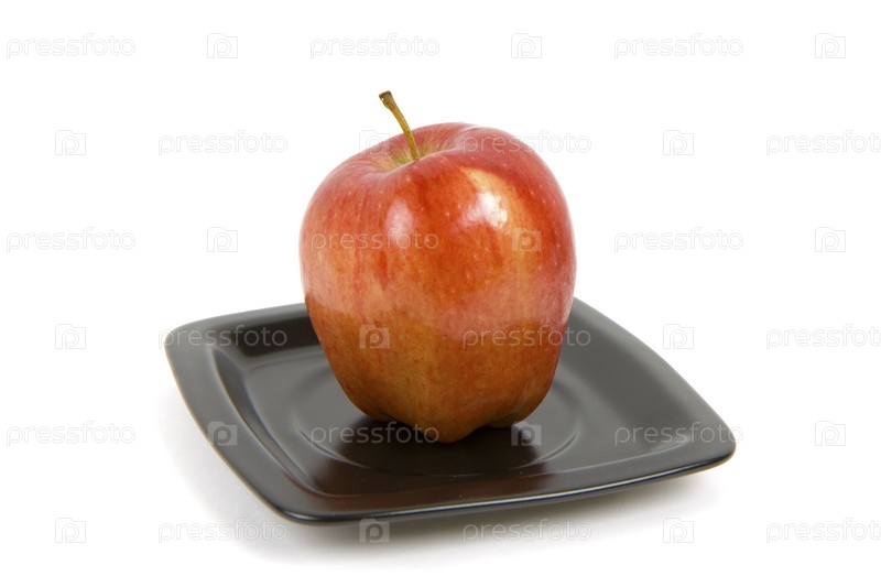 Красное яблоко на черной тарелке
