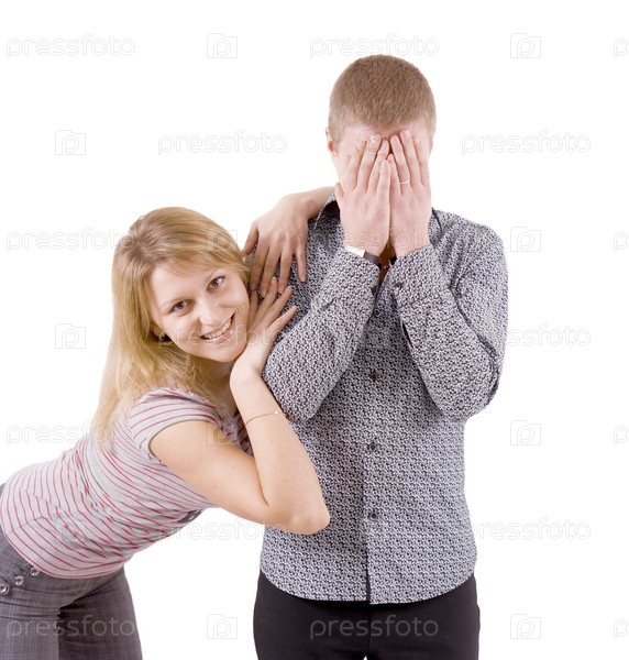 Молодая пара на белом фоне