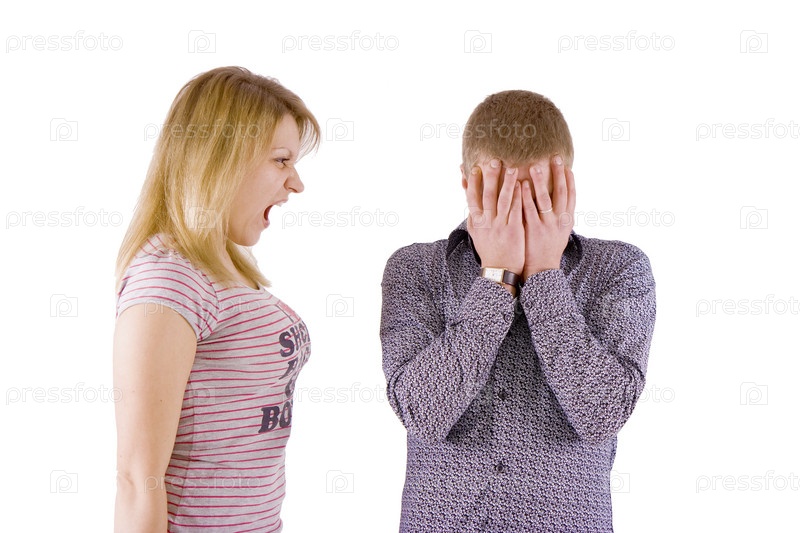 Молодая пара ссорится на белом фоне