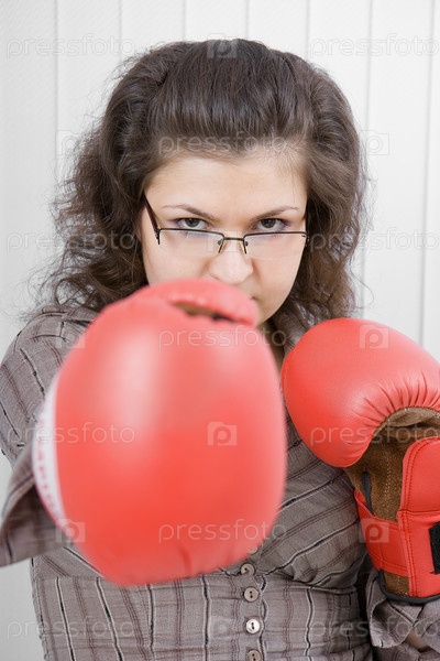 Портрет бизнес-леди в боксерских перчатках