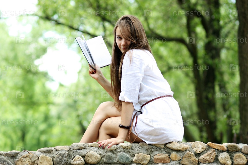 Красивая девушка с книгой в парке