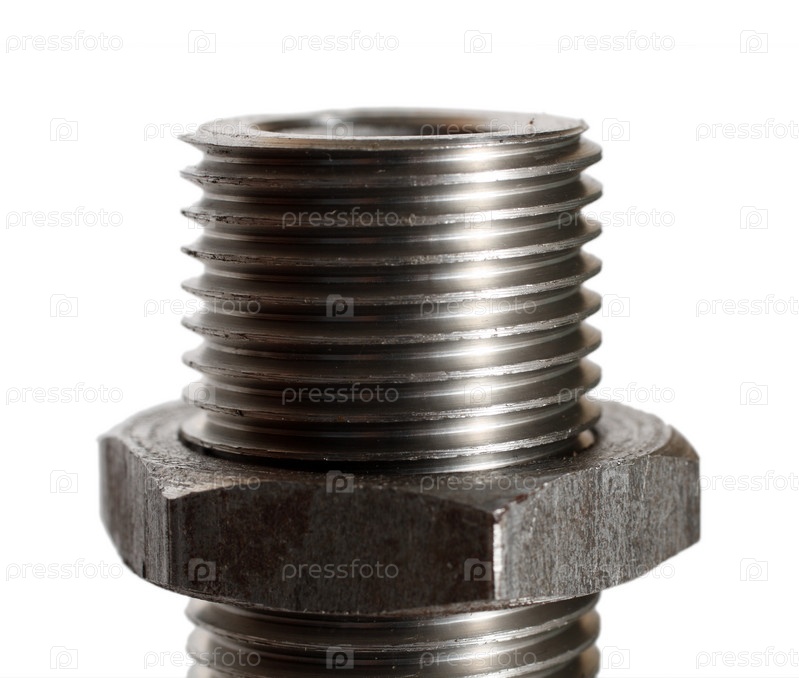 Большой болт с гайкой на белом фоне