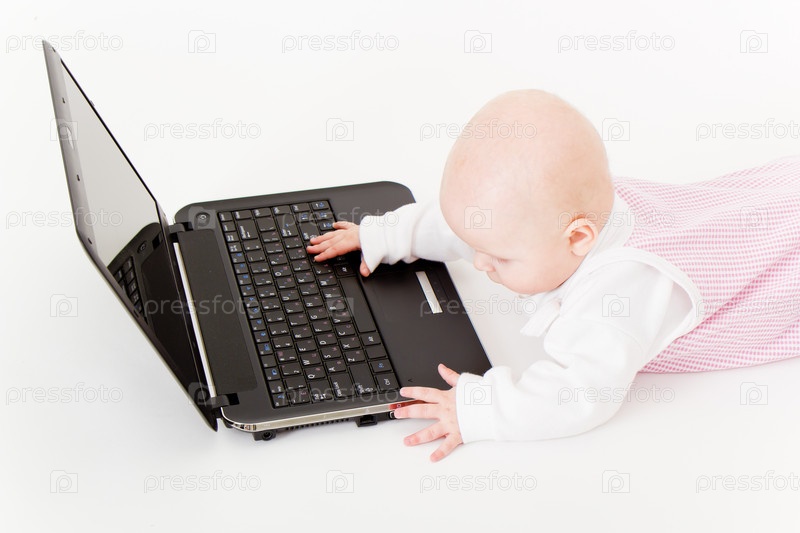 Ребенок с ноутбуком на белом фоне