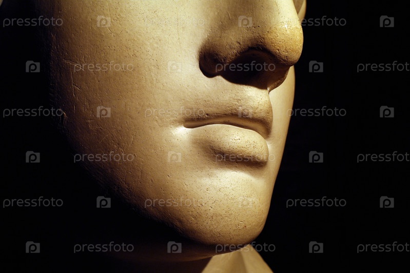 Гипсовая копия головы древнегреческой богини Афродиты на черном фоне