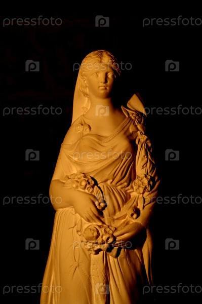 Копия скульптуры древнегреческой богини на черном фоне