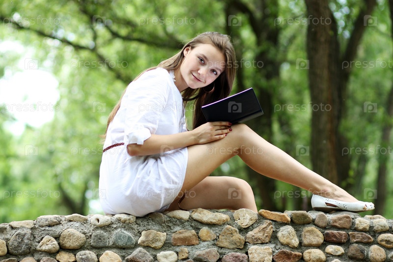 Девушка читает книгу в парке