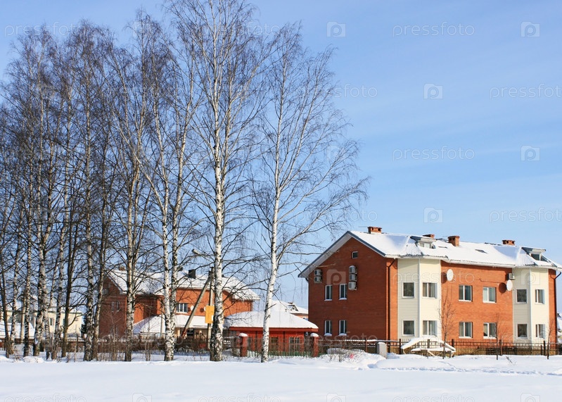 Березы и коттеджи зимой