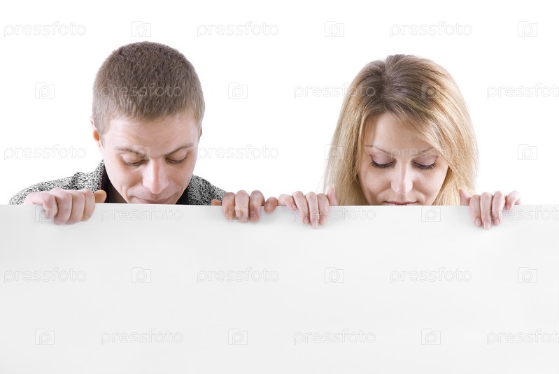 Молодая пара держит пустой плакат