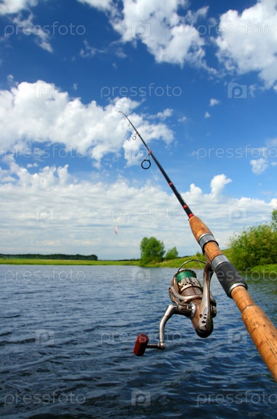Спиннинг с катушкой на фоне озера