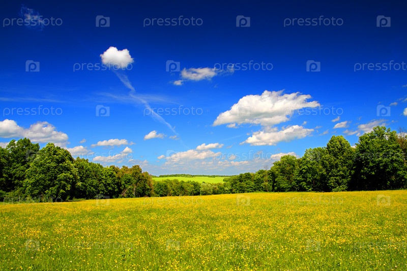 Красивый летний пейзаж с желтыми цветами